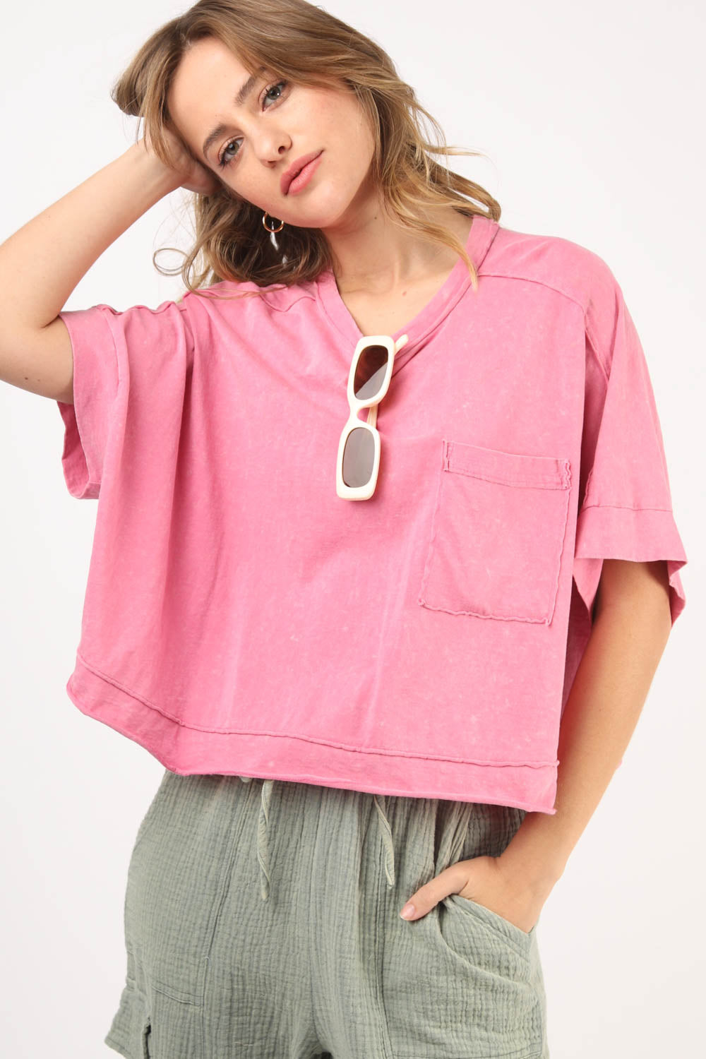 - Washed Soft Knit Dolman Sleeve Crop top
