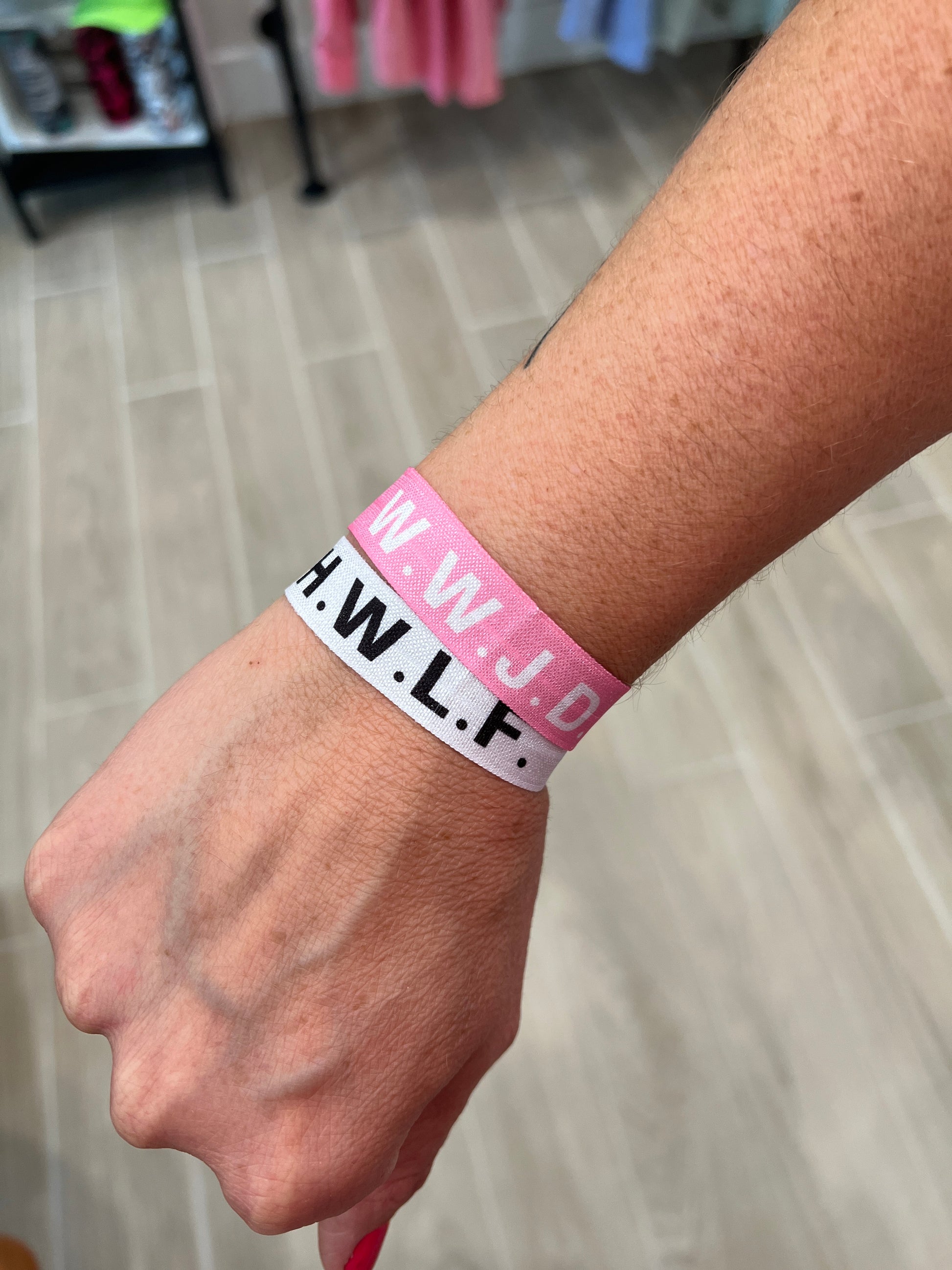 Let your wrist do the talking and spread love and inspiration with our Stretch Tie Bracelet. Featuring the acronyms H.W.L.F. (He Would Love First) and W.W.J.D., this stretchy bracelet doubles as a trendy hair tie. Wear it and ask yourself, "What Would Jesus Do?" (but really, what would he do?)